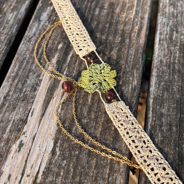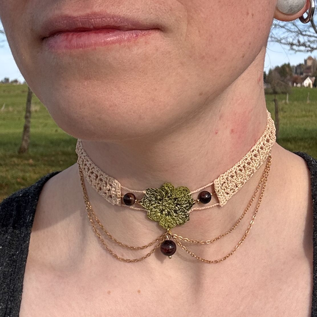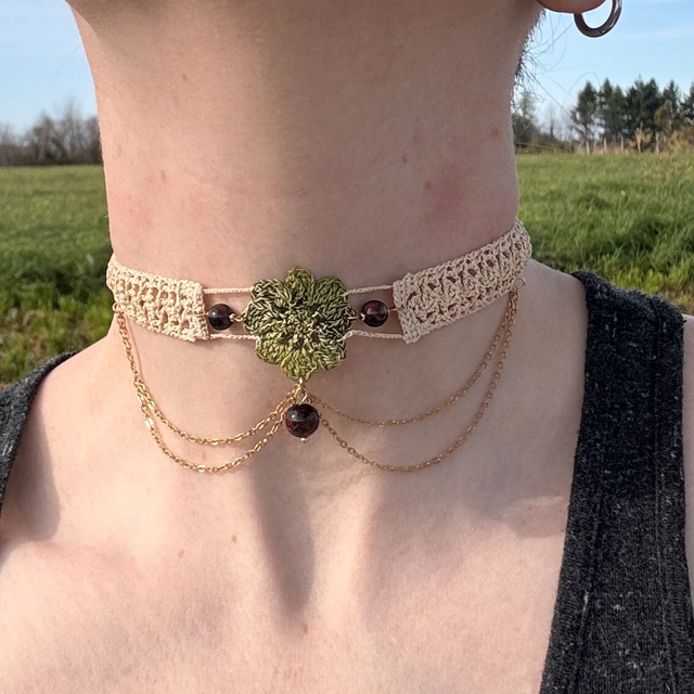Ce collier ras-de-cou est crocheté à la main en micro-crochet avec un fil de coton, d’une finesse et d’une légèreté incomparables. Son motif délicat reprend celui des boucles d’oreilles Parvati, symbole d’amour, d’équilibre et de douceur intérieure.