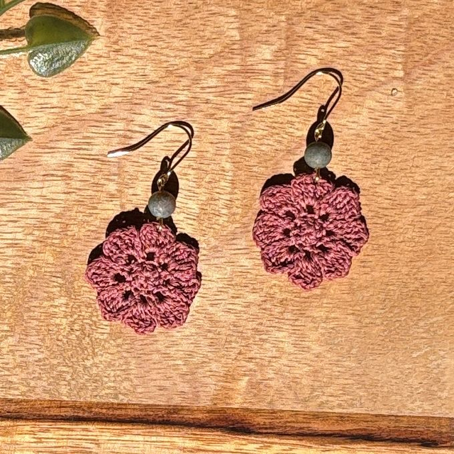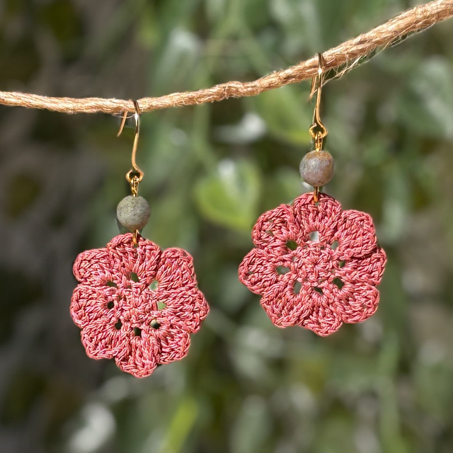 Ces boucles d’oreilles sont réalisés en micro crochet à la main avec un fil de coton très fin, formant une fleur vibrante et solaire.