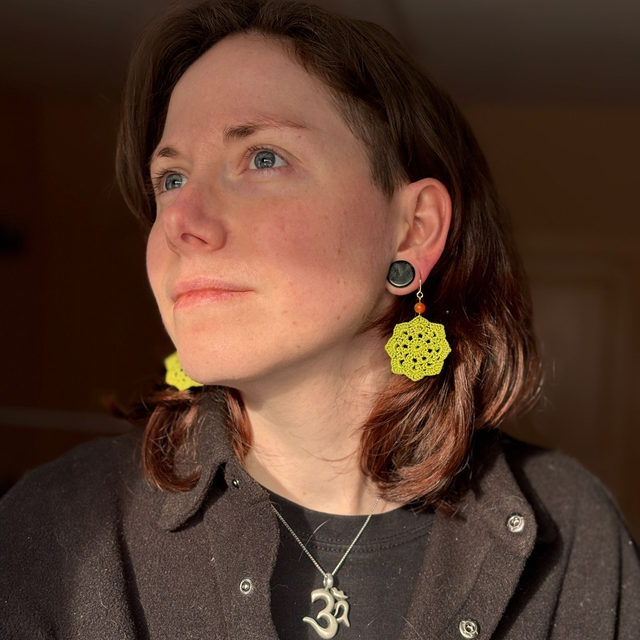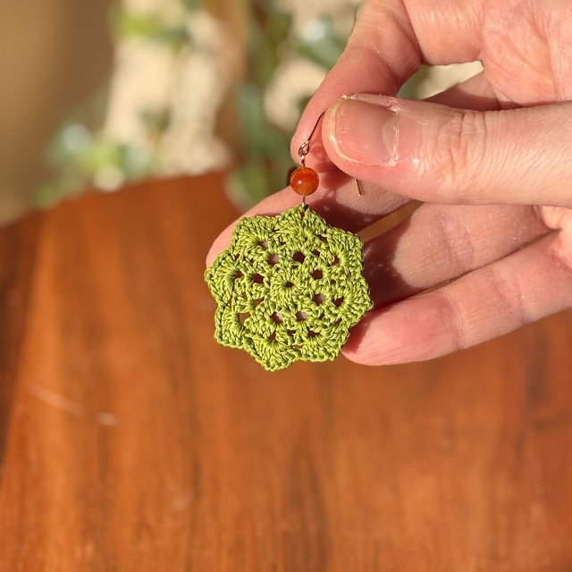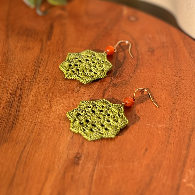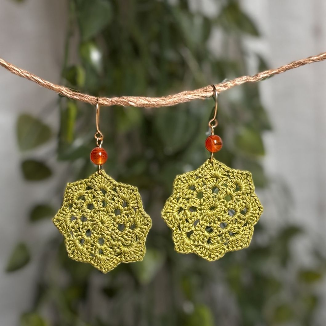 Ces boucles d’oreilles sont réalisés en micro crochet à la main avec un fil de coton très fin, formant une forme géométrique légère et dynamique.