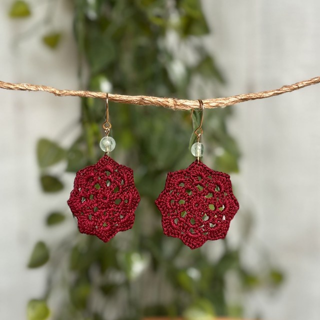 Ces boucles d’oreilles sont réalisés en micro crochet à la main avec un fil de coton très fin, formant une forme géométrique légère et dynamique.