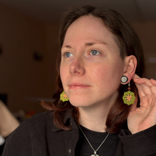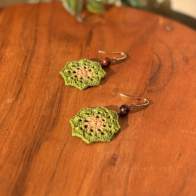 Ces boucles d’oreilles sont réalisés en micro crochet à la main avec un fil de coton très fin, formant une forme géométrique légère et dynamique.