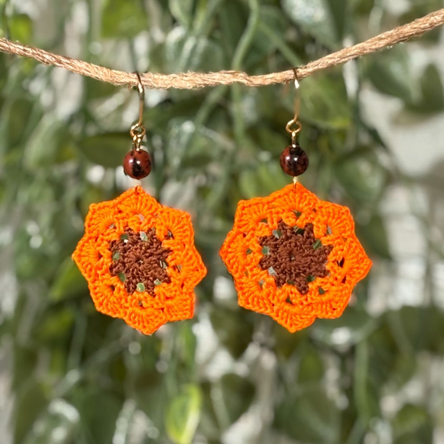 Ces boucles d’oreilles sont réalisés en micro crochet à la main avec un fil de coton très fin, formant une forme géométrique légère et dynamique.
