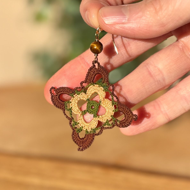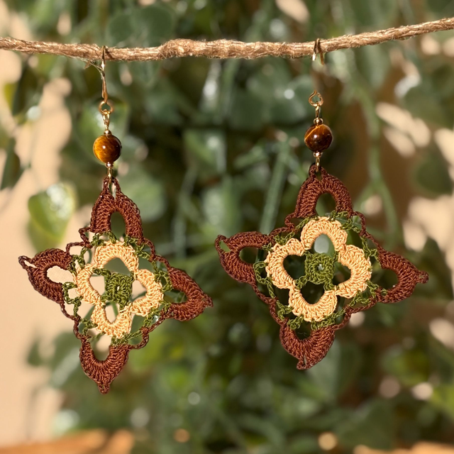 Ces boucles sont crochetées sont réalisés en micro crochet avec un fil de coton très fin et un crochet de 0,75mm. Le motif est réalisé avec précision, symbole d’équilibre et de patience.